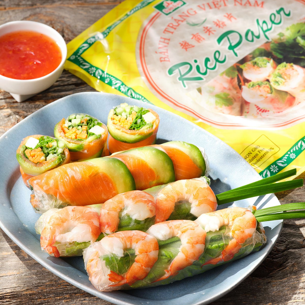 定番のエビはもちろんお好きな具材を巻いて、生でも揚げても焼いてもおいしい、もちもちのライスペーパーです。