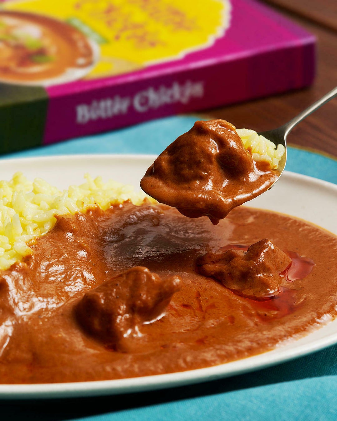 たっぷりのトマトと炒めた玉ねぎをベースに10種のスパイスを効かせ、カシューナッツペーストやバター、ココナッツミルクでコクを出した濃厚でクリーミーな味わいのバターチキンカレーです。