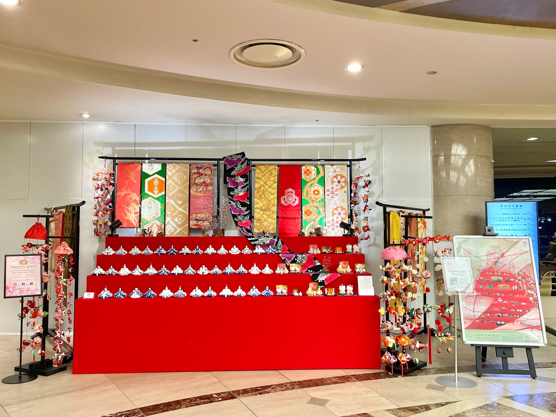ANAクラウンプラザホテルグランコート名古屋【瀬戸焼のお雛さまと古布のつるし雛を桃の薫りとともに楽しむロビー装飾】
