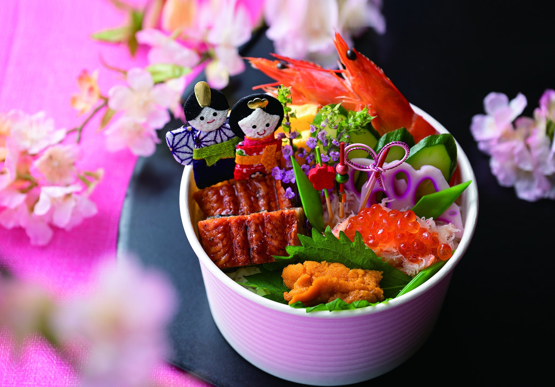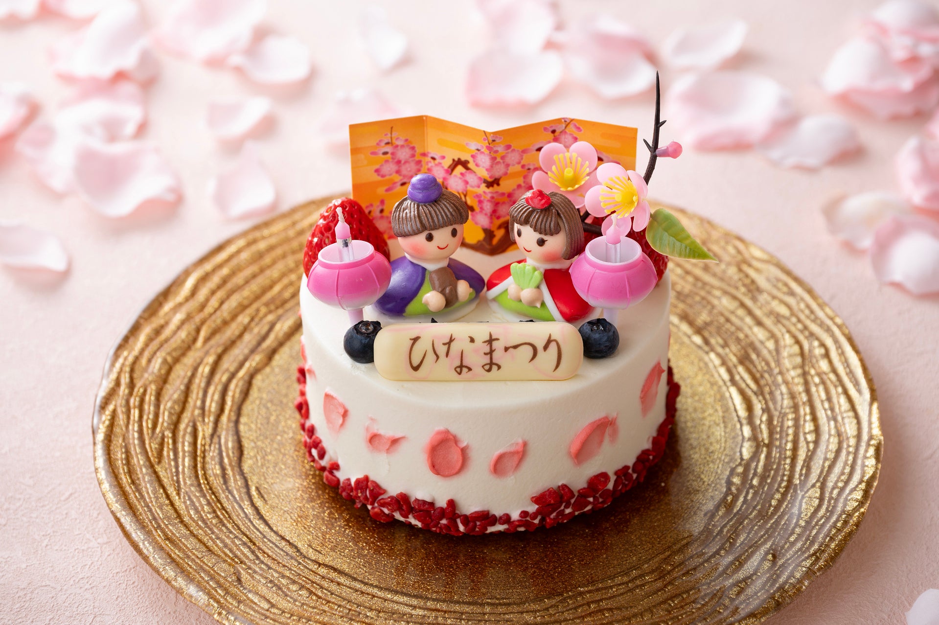 お子様の成長を喜び、いつまでも健やかであることを願うひなまつりのお祝いに、鰻の蒲焼き・蒸しウニ・紅ズワイガニなど豪華な海鮮を盛り込んだ彩やかな雛まつり弁当をご用意しました。あわせて、可愛いお雛さまを飾ったホテル特製ケーキもございます。