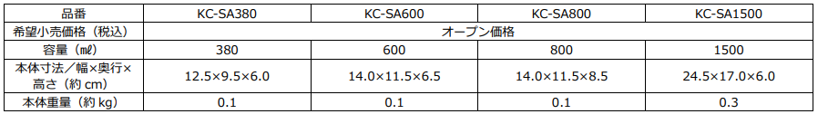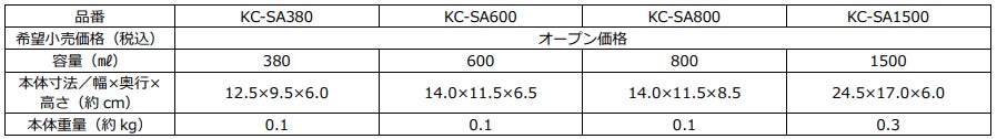 『サーモス Myフードコンテナー 角型(KC-SA380/600/800/1500)』 仕様一覧