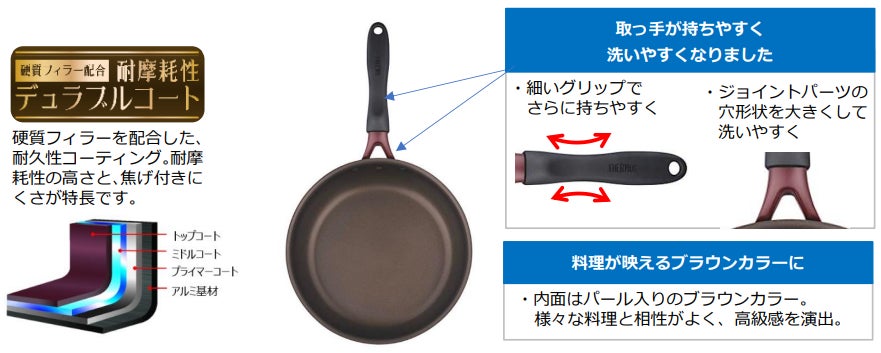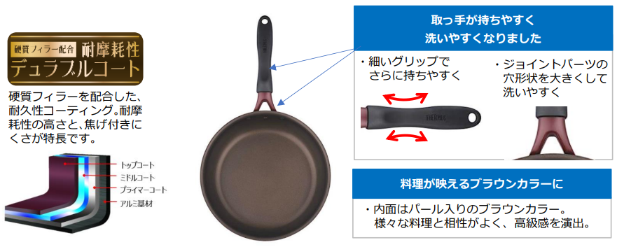 - 取っ手が持ちやすく洗いやすく進化!焦げ付きにくい深型設計のフライパンと炒め鍋がリニューアル!