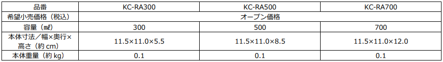 『サーモス Myフードコンテナー 丸型(KC-RA300/500/700)』 仕様一覧