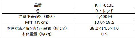 『サーモス デュラブルシリーズ 玉子焼きフライパンKFH (KFH-013E)』仕様一覧