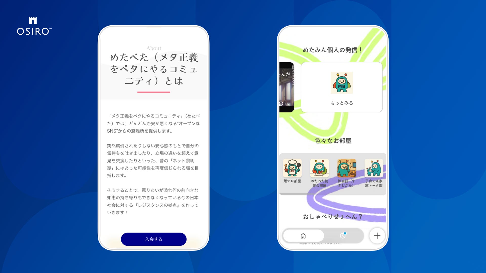 ・他のSNSプラットフォーム提供サービスに比べOSIROは、単にSNSソフトウェアとしてでなく「良いコミュニティとは?」を考えて設計されていると感じたため。