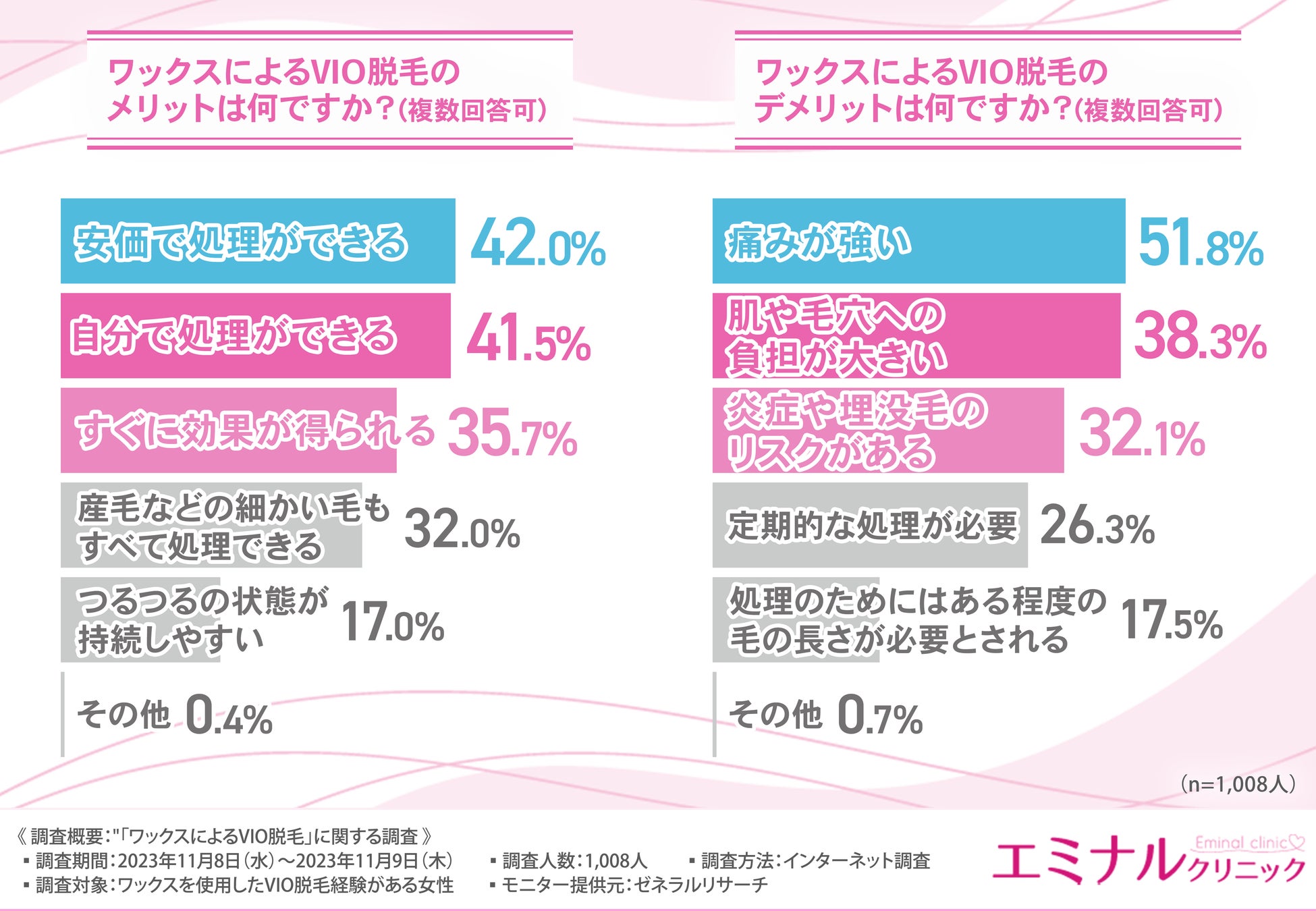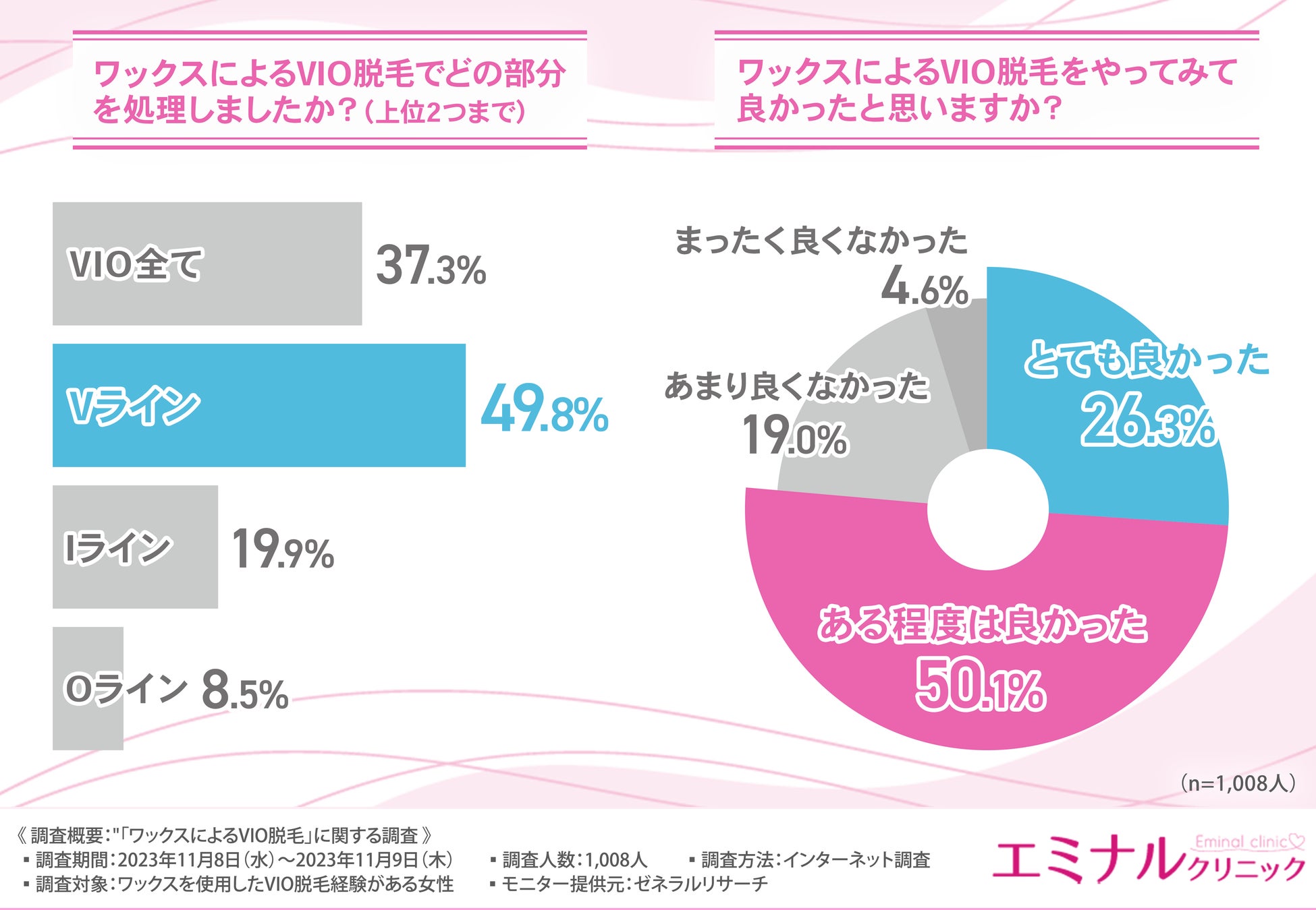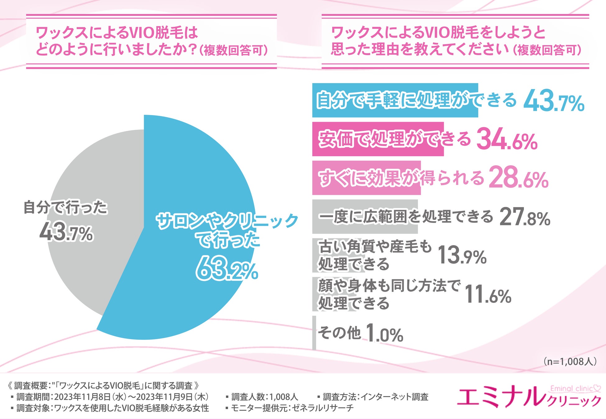 そこで今回、医療脱毛を手掛けるエミナルクリニック(https://eminal-clinic.jp/lp01/?refmedia=11073)は、ワックスを使用したVIO脱毛経験がある女性を対象に「ワックスによるVIO脱毛」に関する調査を実施しました。