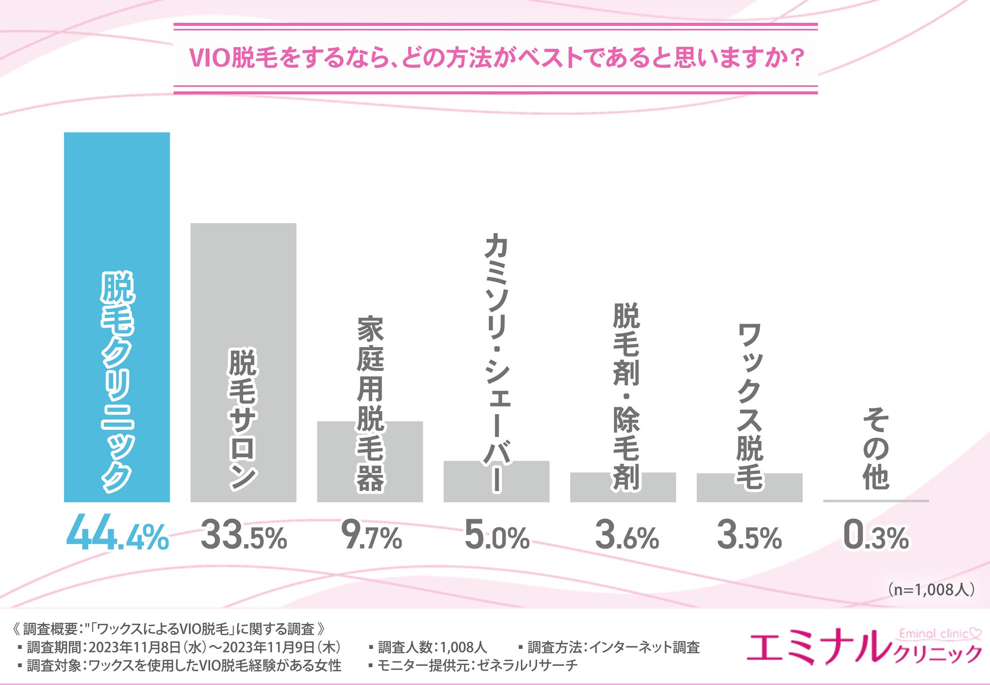 ワックス脱毛経験者のおよそ45%が、VIO脱毛はクリニックで行うのがベストだと回答しました。