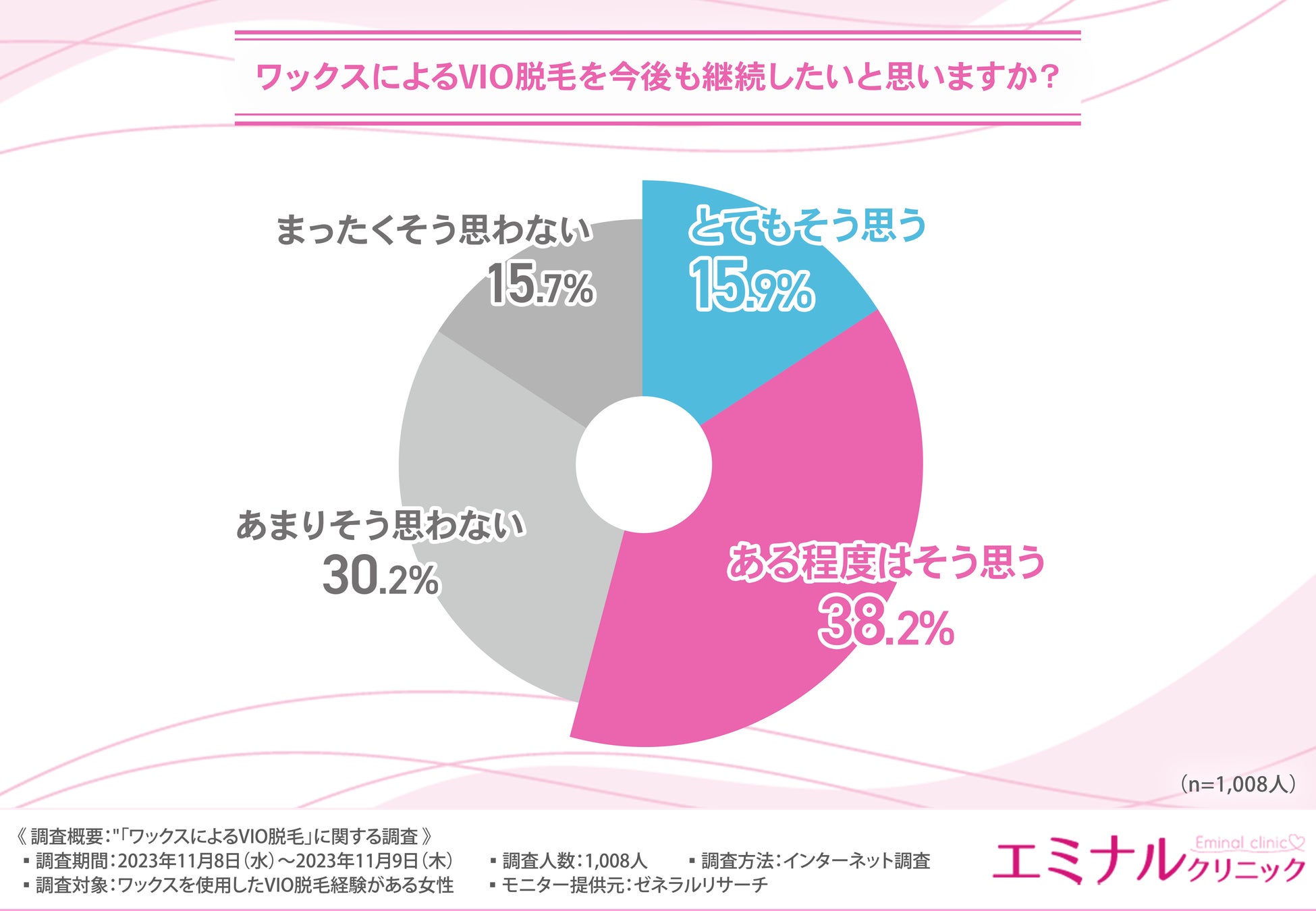 「ワックスによるVIO脱毛を今後も継続したいと思いますか?」と質問したところ、以下のような結果になりました。