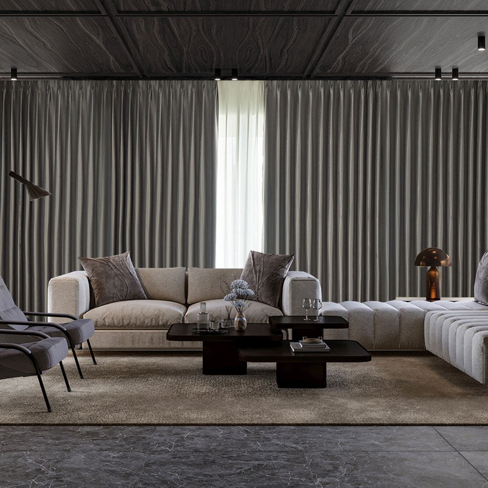 タワマン・広窓のために誕生したリュクスな防炎×完全遮光シームレスカーテン <シームレス リュンヌ> ¥15800~ (税込)