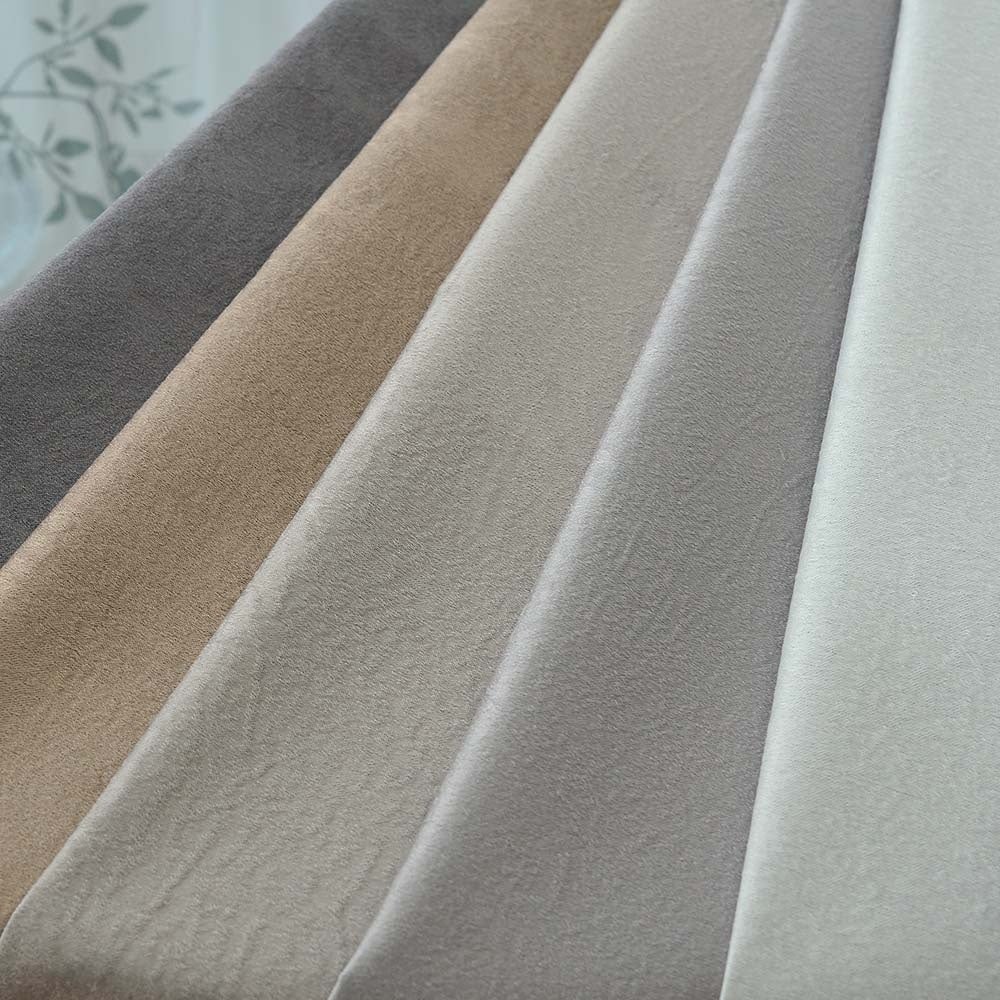 しかし、実は完全遮光カーテンで高層階に必須の「防炎機能」がついているものは少なく、さらに広窓でも巾継ぎと呼ばれる継ぎ目が入らない美しい仕立てが叶う「シームレス」仕様のものとなると、その種類はかなり限られてしまいます。そんな実は珍しい「完全遮光×防炎×シームレス」のカーテンに、リュクスなデザイン性とカラーリングを施したのが「シームレス リュンヌ」です。