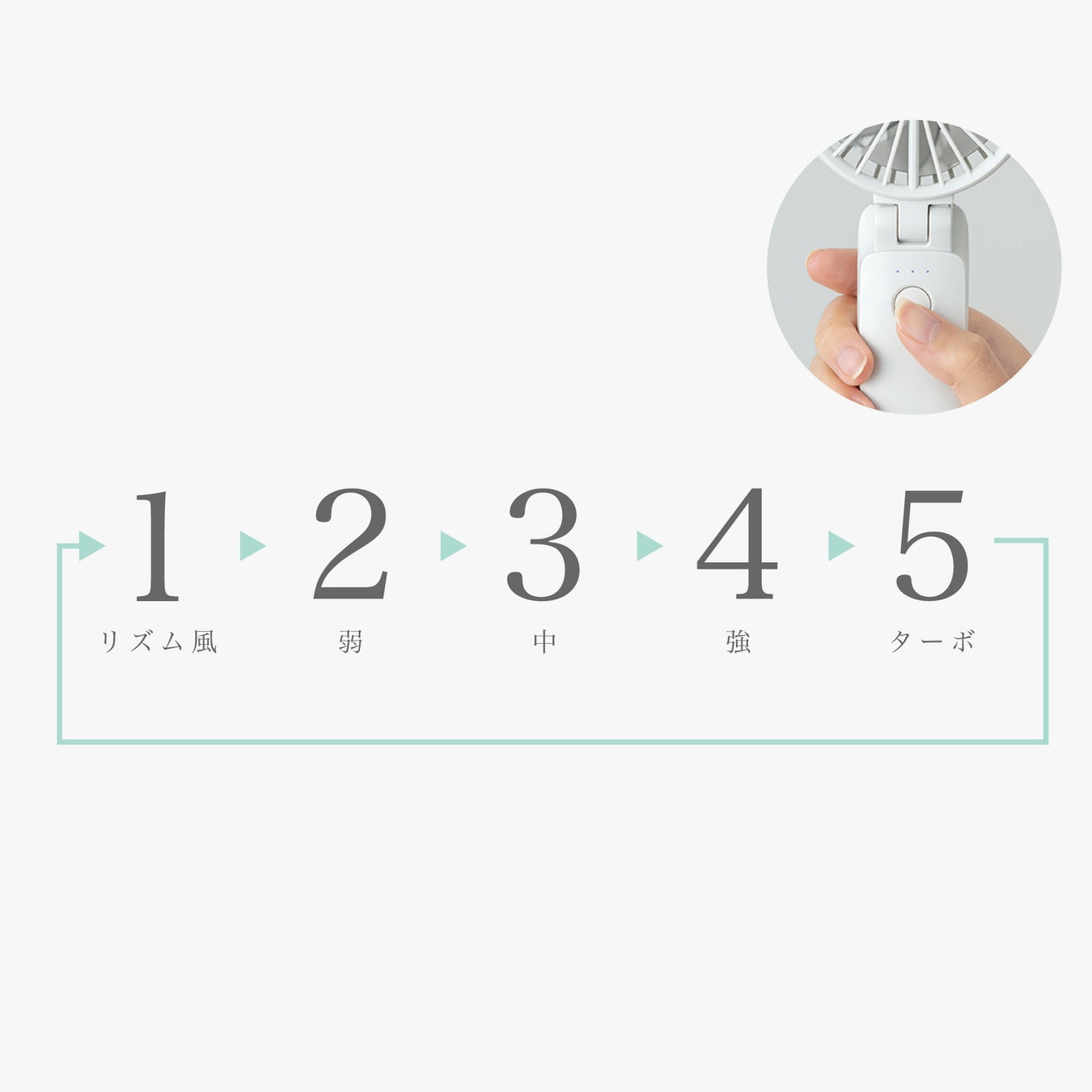 Silky Wind Mobile 2で人気の高かった「リズム風」モードを採用いたしました。リズム風は、一定の周期で風を止めることで、そよ風のような心地のよい風をお届けすることができます。リズム風で最大15時間※使い続けることができるため、前モデルのSilky Wind Mobile 3.1に比べ長時間ご使用いただけます。