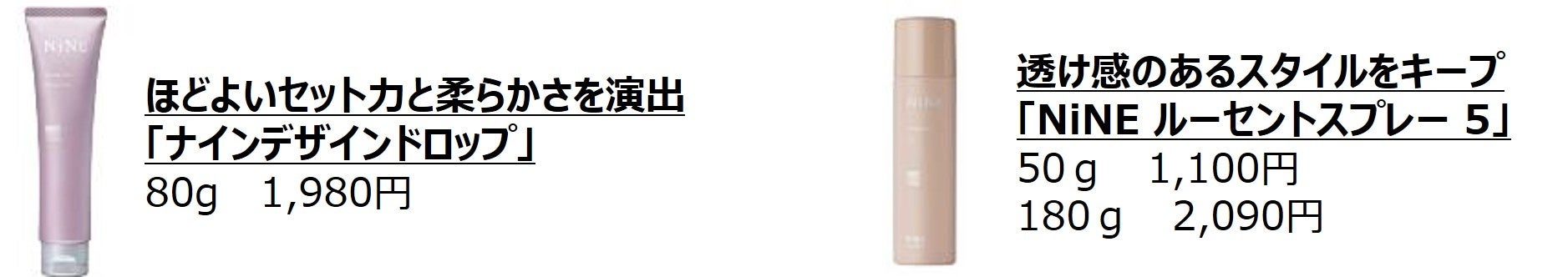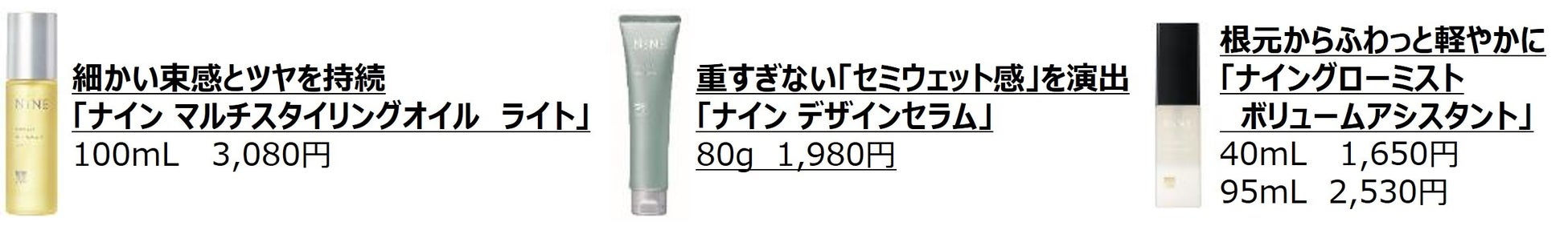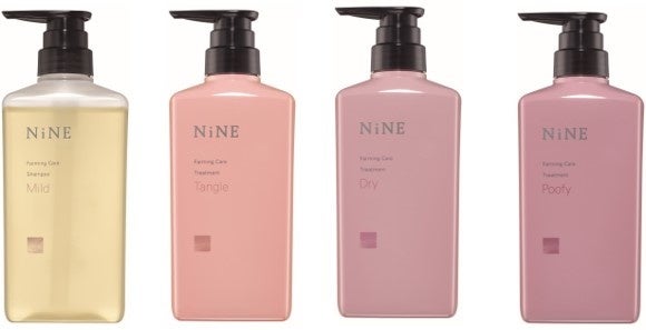 ヘアスタイリングケアブランド「NiNE(ナイン)」は、2019年11月に誕生。美容師が提案する「最新ヘアトレンド」とお客様が求める「ケア効果」のニーズを同時に叶えつつ、“再現可能な使いやすさ”を追求した、スタイリングケアをコンセプトに、オイルタイプとクリームタイプの4種類を展開。2021年5月にスタイリングスプレー、2021年9月にスタイリングミストが加わりました。2023年4月には、シリーズ初となるヘアケアアイテムを発売。