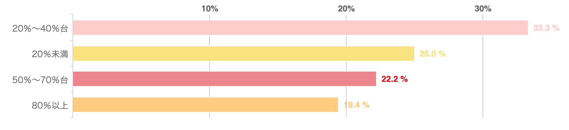 アンケートによれば、公務員の保有資産に占める運用資産の割合は、「20%〜40%台(33.3%)」が最も多く、「20%未満(25.0%)」「50%〜70%台(22.2%)」が続く結果となった。