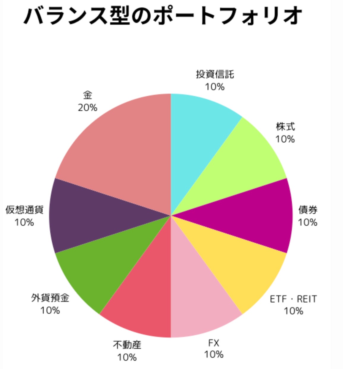 また、以下のように、ほぼ全ての資産クラスでポートフォリオを構成している回答者もいた。