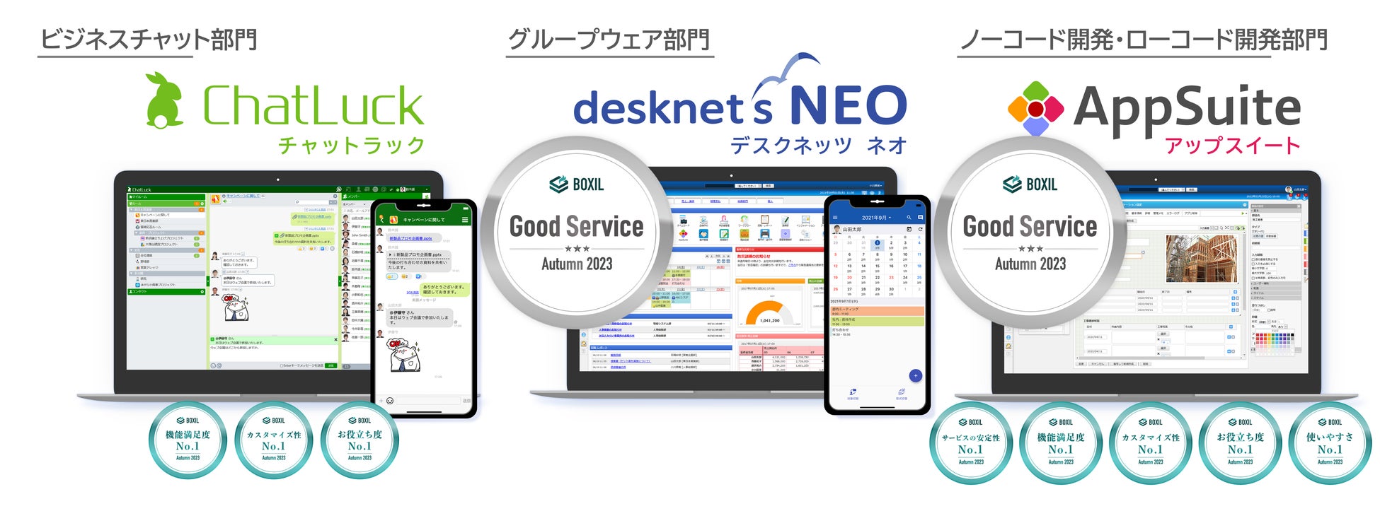 ネオジャパン、グループウェア『desknet's NEO』・ビジネスチャット『ChatLuck』・ノーコードアプリ作成ツール『AppSuite』が「BOXIL SaaS AWARD 2023」にて受賞