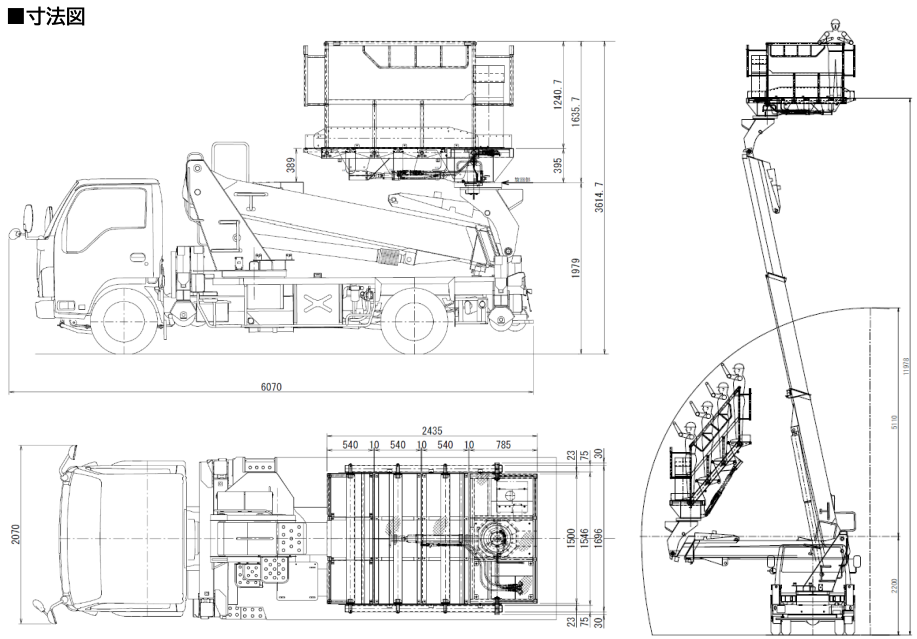 ※ローラージャッキ:トンネル内での作業等、長く続く現場での移動の際に、ブーム・ジャッキを格納する必要がないため、通常ジャッキ装備のタイプよりも効率的に作業を行える