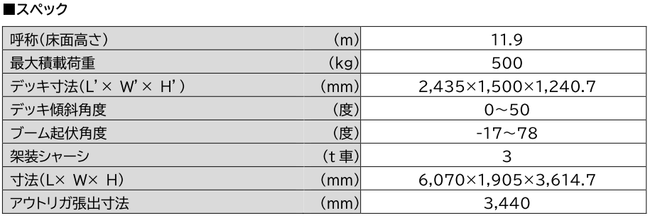 トンネル点検作業の効率化を追求した高所作業車 「トンネル点検プラットフォーム」レンタル開始