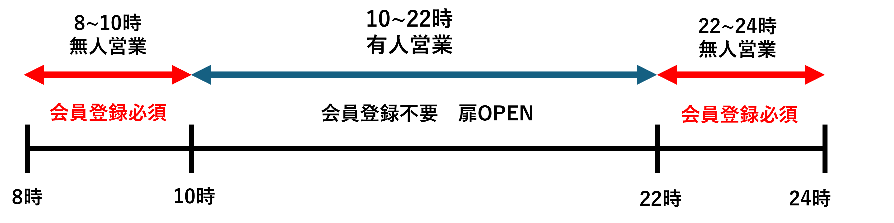 (8:00~10:00および22:00~24:00は完全会員制・無人営業)