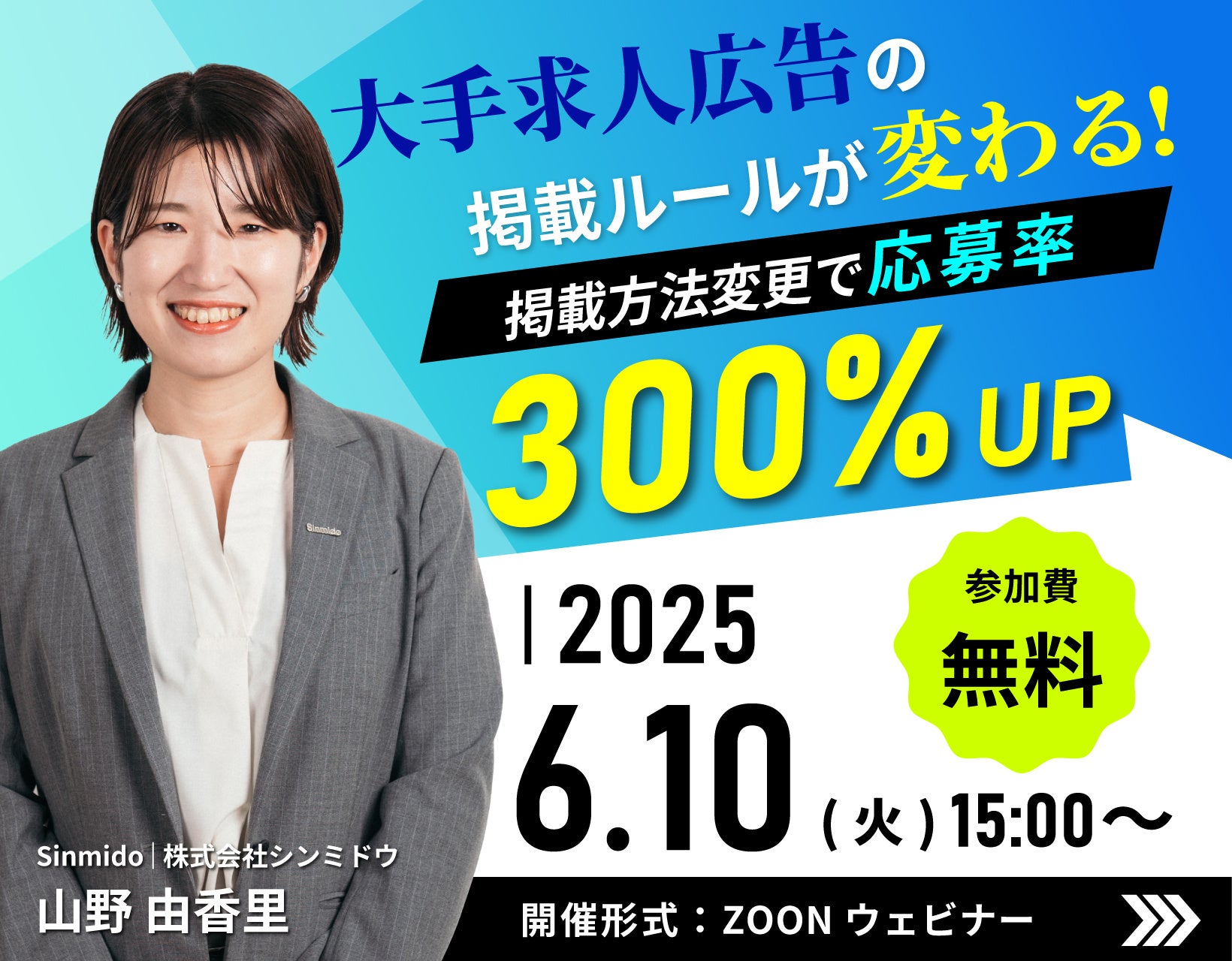 株式会社シンミドウ(本社:埼玉県さいたま市)は、大手求人広告を効果的に運用するためのコツに関する無料ウェビナーを開催します。