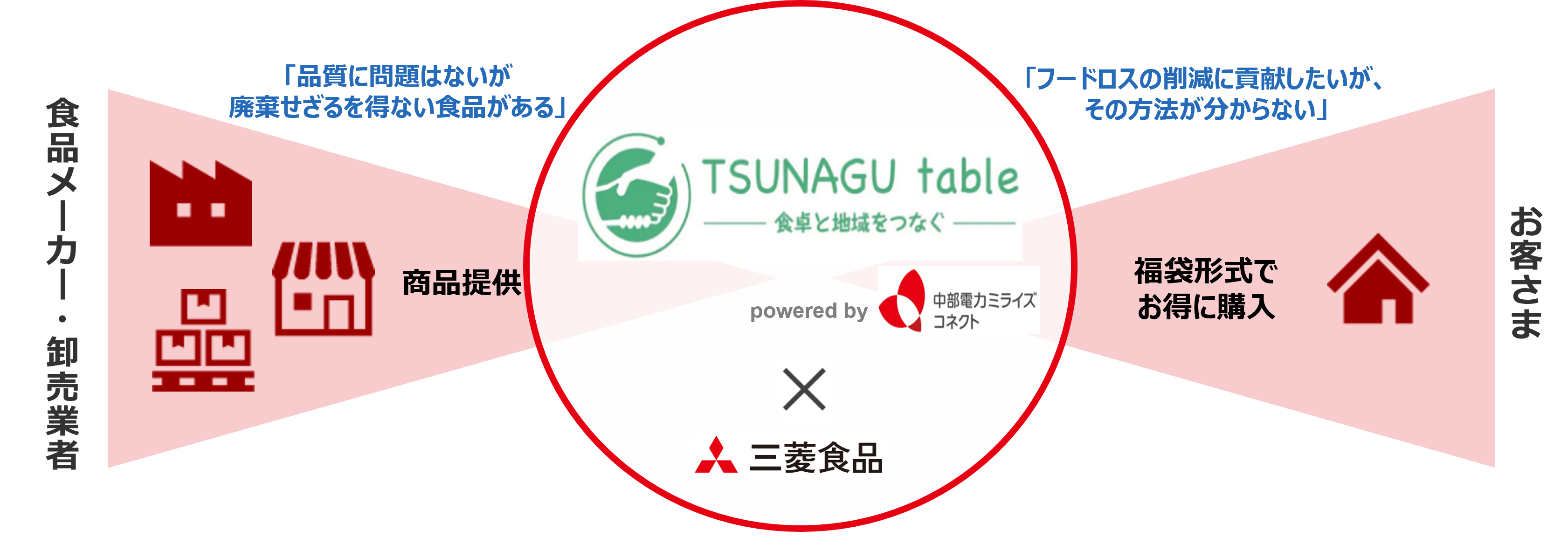 本協定に基づき、両社は、中部電力ミライズコネクトが展開する「TSUNAGU table」を活用し、三菱食品に魅力的な商品を提供する食品メーカーのフードロス削減に貢献してまいります。