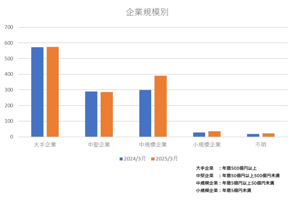 規模別では、大手企業が最も多く、次いで中規模企業の割合が高い傾向にあります。大手企業では、オンプレ型の導入も多く見られ、シーネットのWMSがクラウドでもオンプレでも柔軟に対応できる特徴が評価されています。