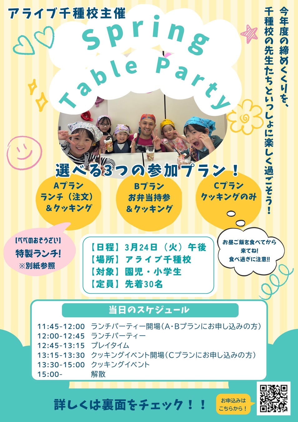 英語の保育園・子ども英会話・英語の学童を展開する 株式会社アライブ(本社:愛知県名古屋市)は、2026年3月24日(火)、名古屋市千種区の アライブイングリッシュスクール千種校(校舎マネージャー:宮崎 文)にて、地域の園児・小学生を対象としたクッキング体験型英語イベント「スプリング・テーブル・パーティー」を開催いたします。