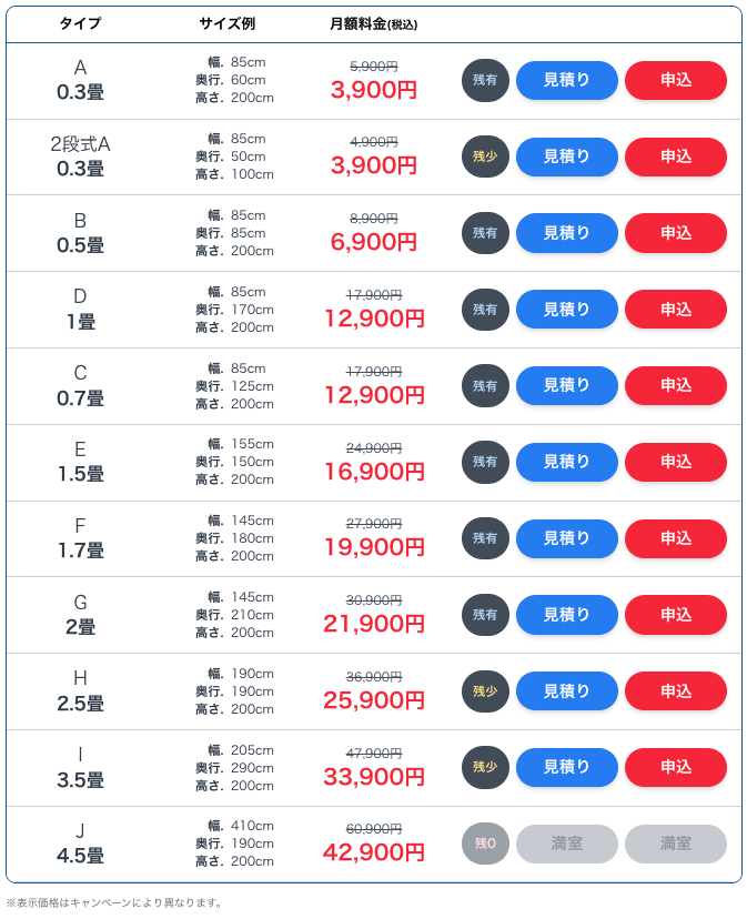 荷物以上に大きな部屋を借りてしまうことや、狭すぎて荷物が入らなかったなんていうトラブルを回避できます。