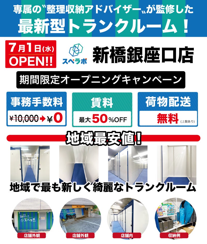 【7月1日(金)オープン】見学から契約、解約まで完全非接触・非対面、お申し込みからご利用まで最短1時間!都内にて絶賛運営中のトランクルーム【スペラボ】が港区新橋駅前に出店!