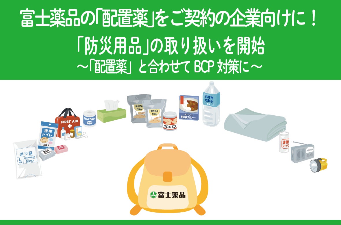 富士薬品の「配置薬」をご契約の企業向けに「防災用品」の取り扱いを開始