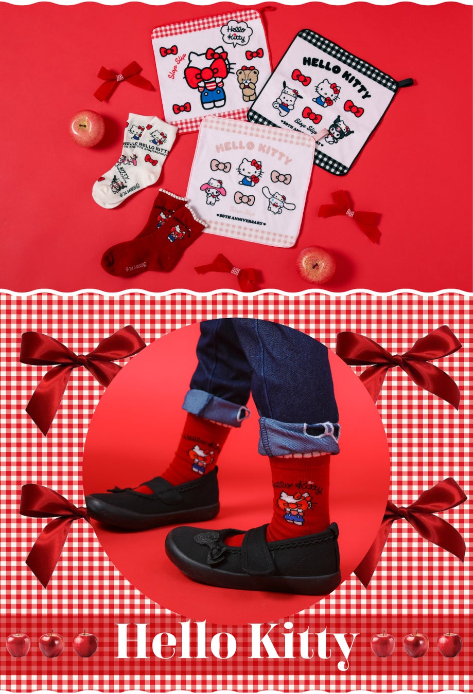 ハローキティ50周年の特別なデザインが秋服でも登場!毎日身につけたくなる&持ち歩きたくなる小物も発売。おしゃれを楽しみながら、みんなでハローキティの50周年をお祝いしましょう!