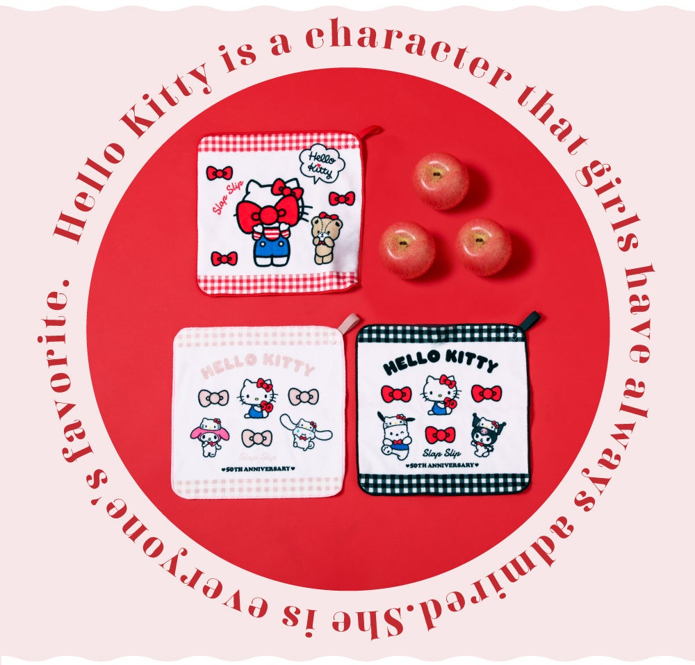 SLAP SLIP(スラップ スリップ)より、ハローキティ50周年を記念したコラボレーション企画第二弾が発売開始。第一弾に続いて50周年限定のデザインや、サンリオの人気キャラクターが集まった特別なアイテムが新登場!SLAP SLIP(スラップ スリップ)と一緒にハローキティをお祝いしましょう!
