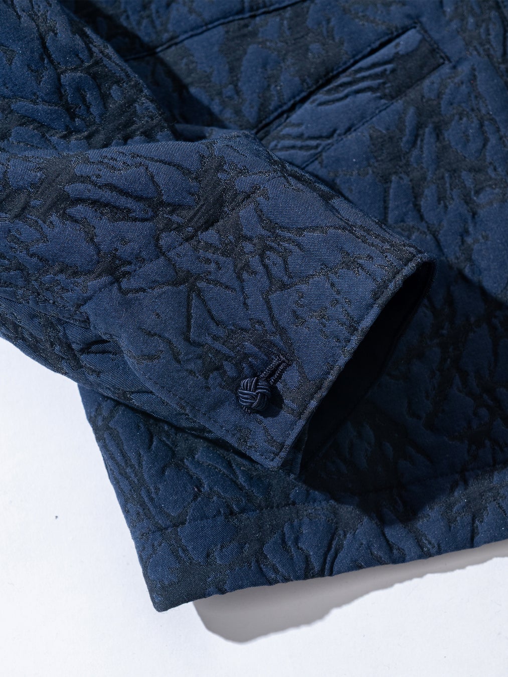 襟のタブや袖には、古くから縁起物として親しまれてきた「水引」を思わせるノットボタンをあしらいました。同素材のトラウザーズとのセットアップスタイルも可能です。