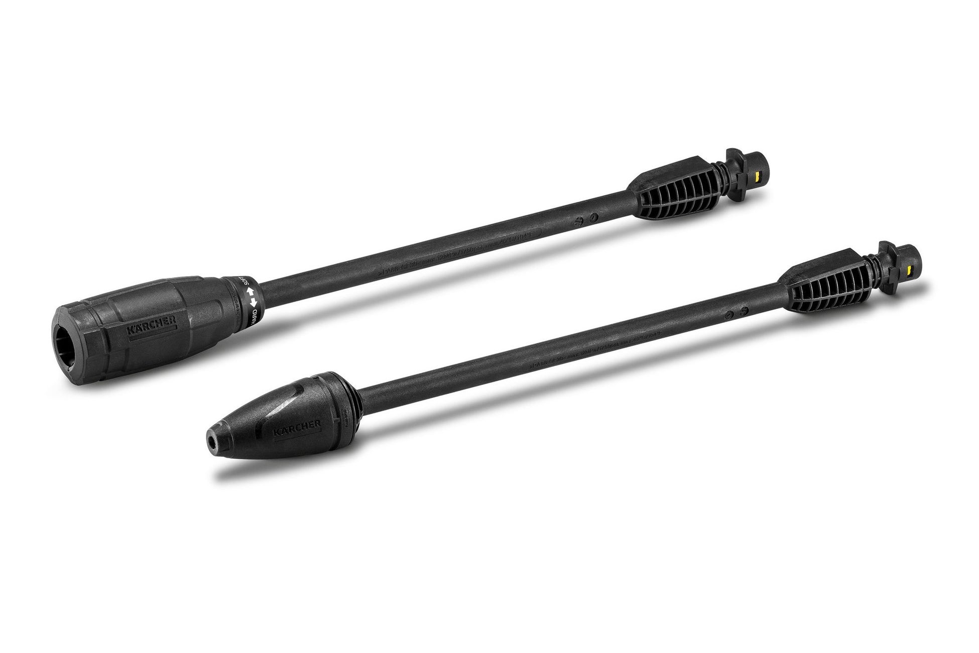 標準装備された2種類のノズル「バリオスプレーランス」と「サイクロンジェットノズル」は、様々な汚れを効率よく洗浄することができ、オプション品の購入は必要ありません。また、洗浄剤を塗布できる洗浄剤吸引ホースも付属しており、本体から洗浄剤吸引ホースを引き延ばし、直接洗浄剤を本体に入れるだけで使用できるため、水だけでは落ちにくい汚れの清掃にも対応可能です。