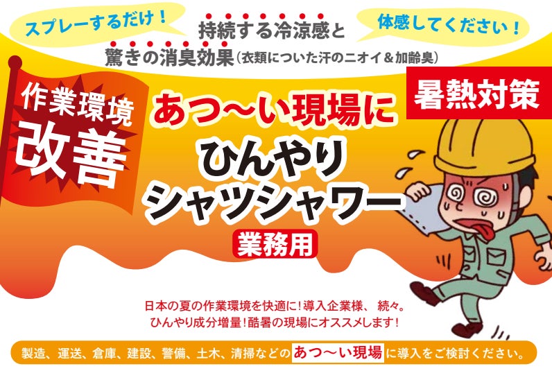 例年好評を頂いておりました「ひんやりシャツシャワー ストロング 業務用」を、今年は現場でより使いやすい「無香料タイプ」にリニューアルし、新発売いたします。