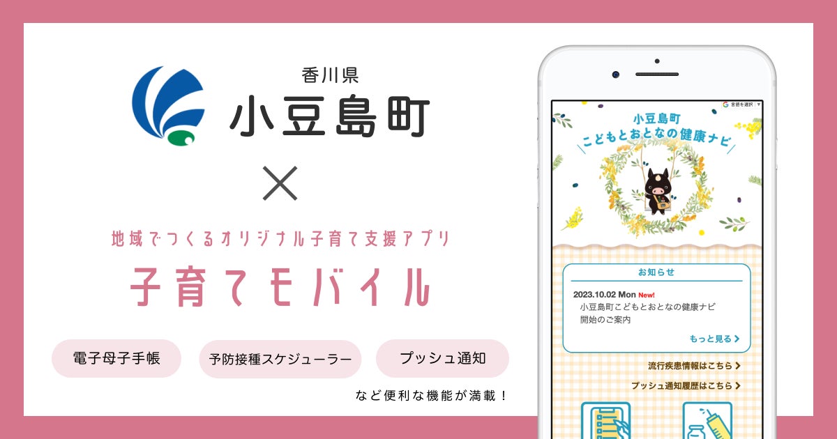 自治体向けサービスを開発する株式会社ミラボ(本社:東京都千代田区、代表取締役:谷川一也、以下「ミラボ」)の子育て支援アプリ「子育てモバイル」が、香川県 小豆島町に導入され、「小豆島町こどもとおとなの健康ナビ」として10月2日より提供を開始します。