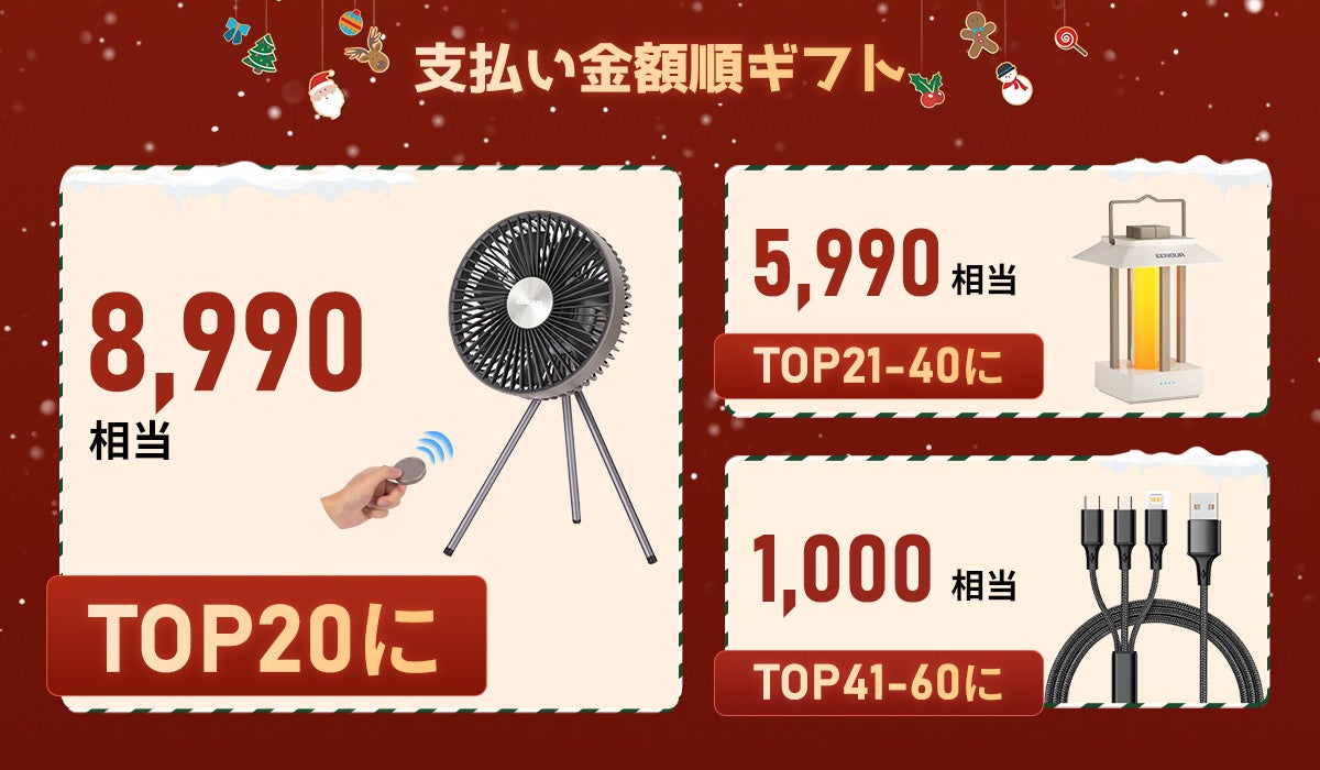 ご支払総金額トップ20名様に8,990円のリモコンファンをプレゼント