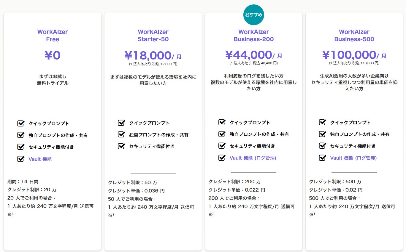 料金ページ:https://workaizer.jp/#price