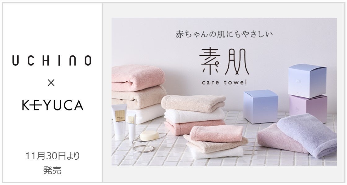 内野株式会社(本社:東京都中央区/代表取締役社長:内野孝信)は、河淳株式会社(本社:東京都中央区/代表:河崎淳三郎)が展開するKEYUCA(ケユカ)とコラボしたタオルをリリースしたことをお知らせいたします。肌へのやさしさに徹底的にこだわり抜いて作り上げたスキンケア発想の「素肌ケアタオル」(全4展開)を2024年11月30日(土)よりKEYUCAの全国の店舗、およびオンラインストアで販売しています。(https://www.keyuca.com)