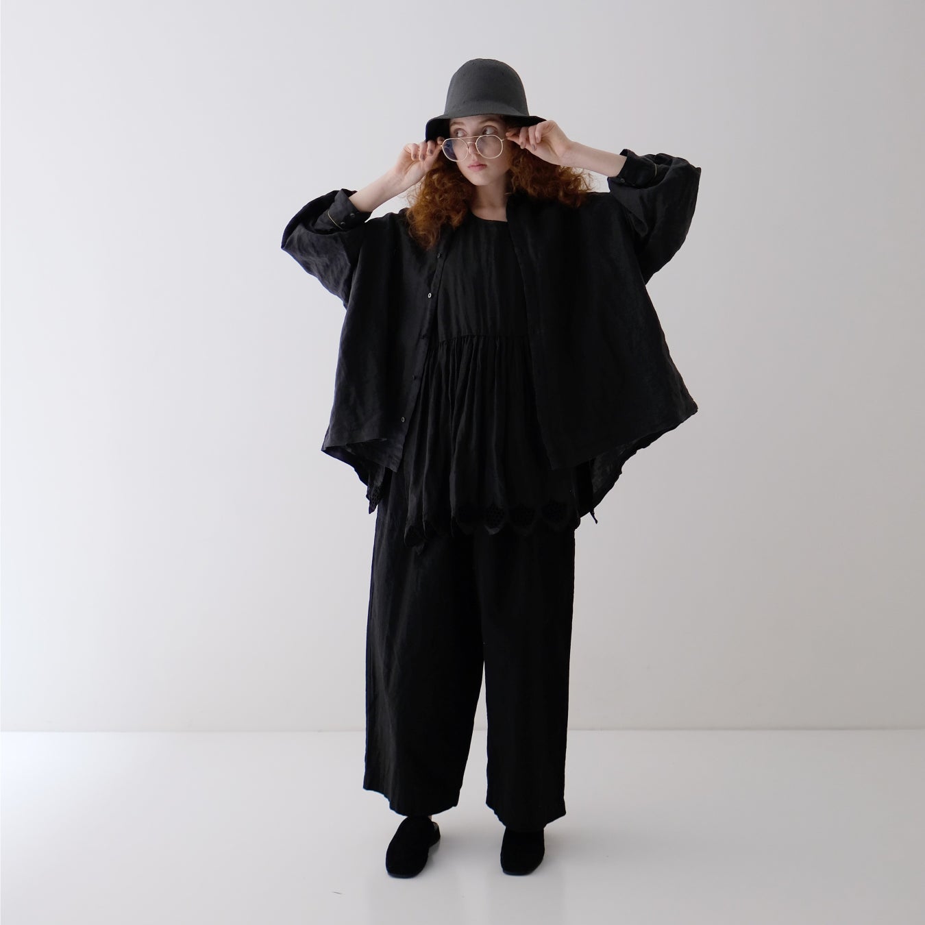 linen ohmi-zarashi ruffle hem pants/24,200yen