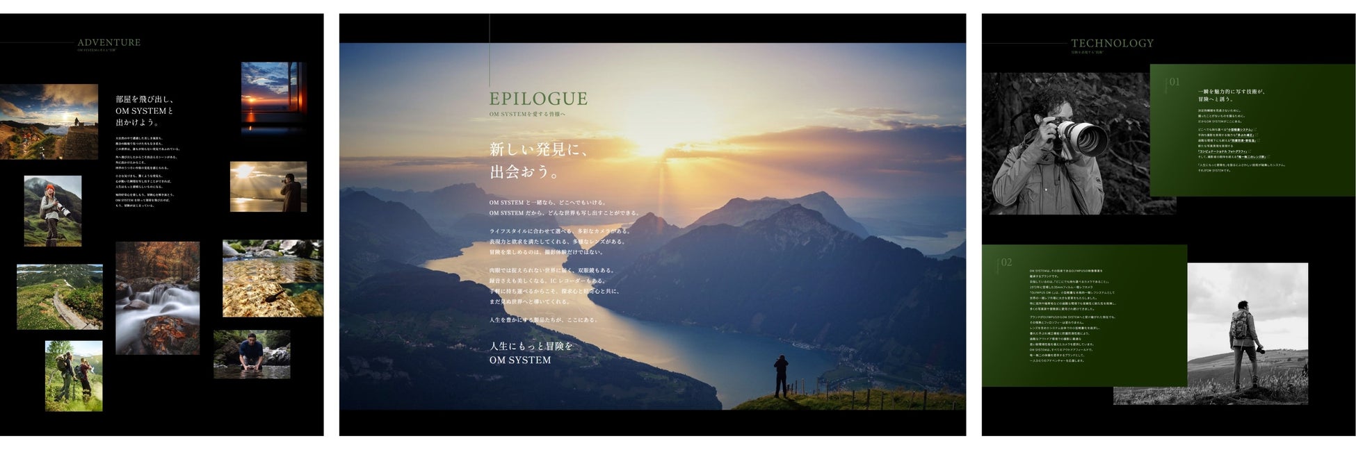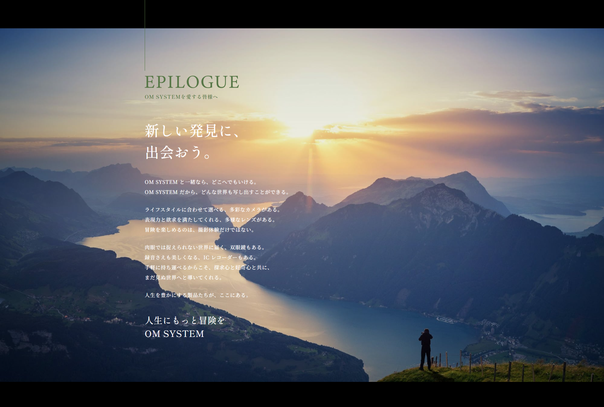 OM SYSTEMのブランドのキーワードとなる「冒険」を打ち出し、デザインやコンテンツを一新しました。ブランドのタグライン「人生にもっと冒険を」に込められている想いや、みなさんの冒険を叶えるための核となるOM SYSTEMならではの機能や性能を紹介し、OM SYSTEMとともに出かけたくなるワクワク感を表現しています。