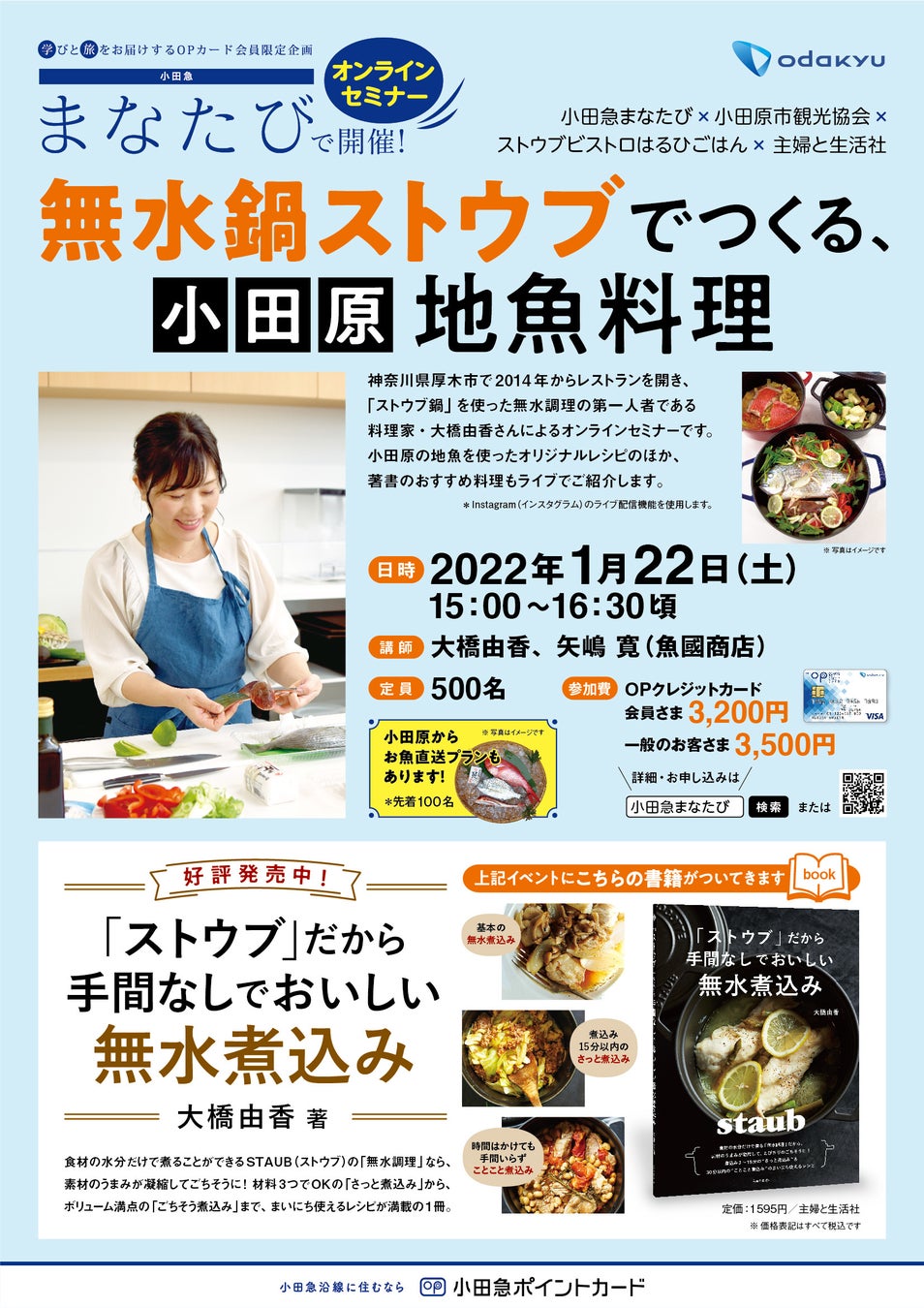 2022年1/22(土)に開催されるオンラインイベントは、まだまだ参加申し込み受付中。著者の大橋さんが、ストウブを使って小田原の地魚で作るオリジナルレシピをライブでご紹介。著書からオススメ料理も公開しますよ。