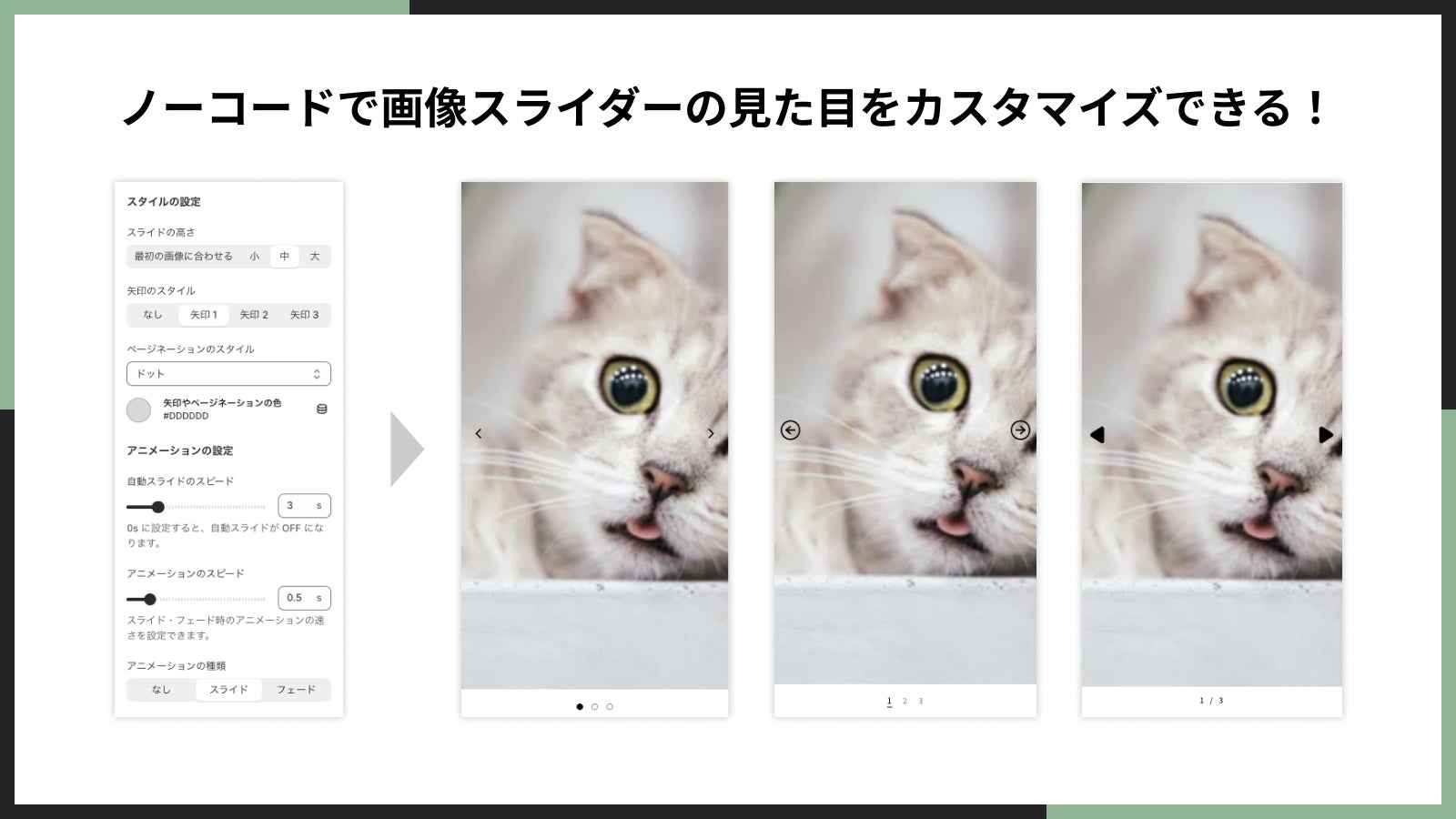 ■ノーコードで画像スライダーの見た目をカスタマイズできる!