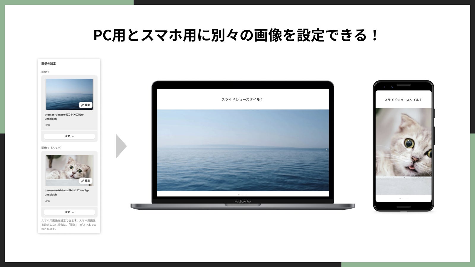 「シンプルスライドショー|お手軽画像スライダー」は、PC用とスマホ用に別々の画像を設定できます。