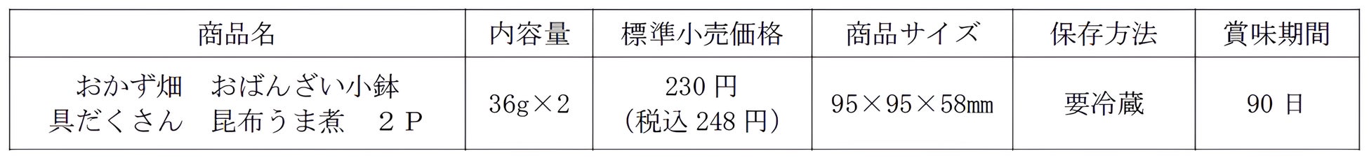 今回、リニューアル発売する「おかず畑 おばんざい小鉢 具だくさん 昆布うま煮」は、2019年に「おかず畑 おばんざい小鉢 切り昆布煮」として発売開始し、お客様から「具材が豊富で様々な栄養が摂れる」とご愛顧いただいてきました。“具だくさんのおかずを手軽に食べられる”ことを、より一層多くの方々に知っていただきたいという思いから、商品名を「おかず畑 おばんざい小鉢 具だくさん 昆布うま煮」に変更し、さらに昆布の長さを揃えておかずとしての一体感をアップさせるリニューアルを実施いたします。