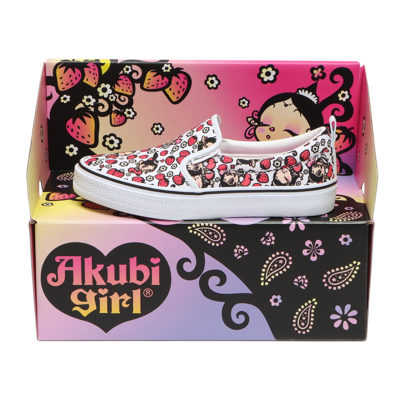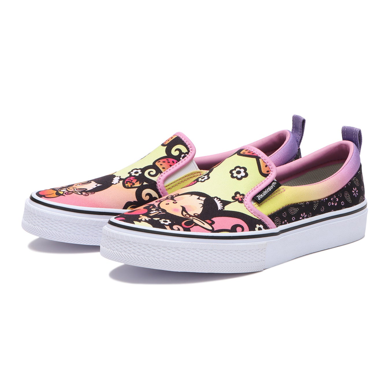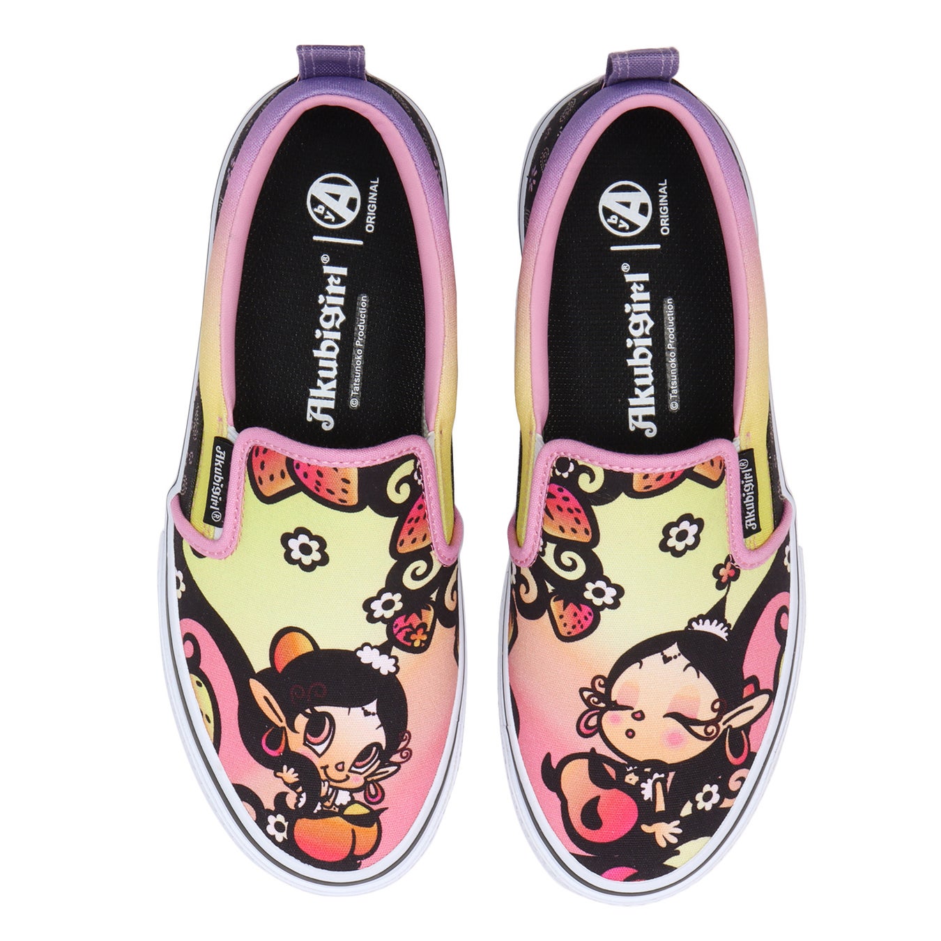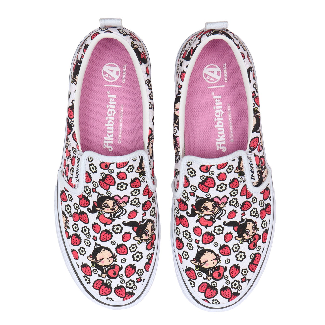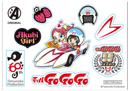 『マッハGoGoGo』のロゴや世界観をデザインに踏襲したスリッポンシューズ2種と『アクビガール』の主人公であるアクビちゃんを可愛らしくデザインに組み込んだスリッポンシューズ2種の合計4種類をご用意いたしました。また、『アクビガール』などのキャラクターを手掛けた吉田すずか先生のオリジナル描き下ろしビジュアルステッカーも購入商品に同封いたします。