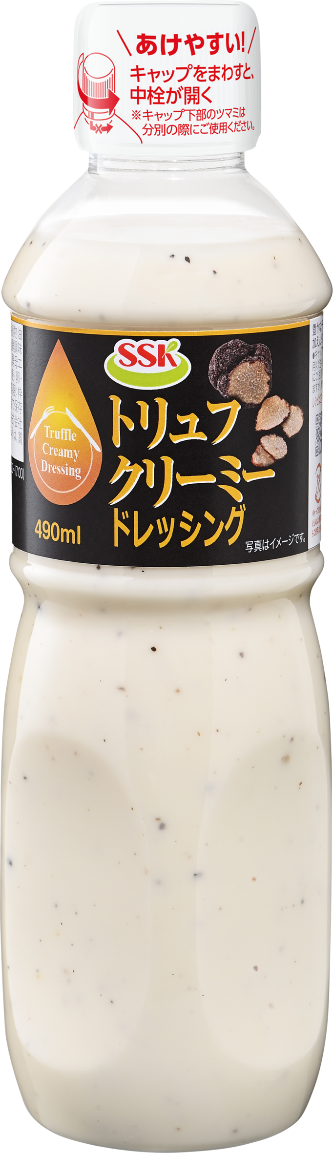 「SSK トリュフクリーミードレッシング」は、黒トリュフを使用し、香り高いトリュフ風味を堪能できるドレッシングです。サラダはもちろん卵料理や肉・魚料理によく合い、手軽にトリュフ風味を味わうことがで