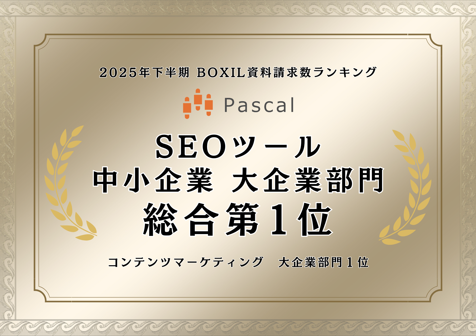 SEOツール「パスカル」が、「2025年下半期 BOXIL資料請求数ランキング」 SEOツールカテゴリ総合1位に選出!