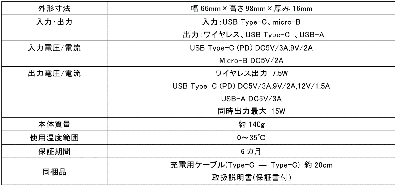 ワイヤレス出力最大7.5W、USB PD最大18W入出力対応で本体もスマートフォンも急速充電可能