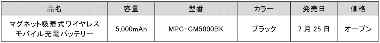マグネット式でかんたん吸着、ワイヤレスで急速充電できるモバイルバッテリー発売