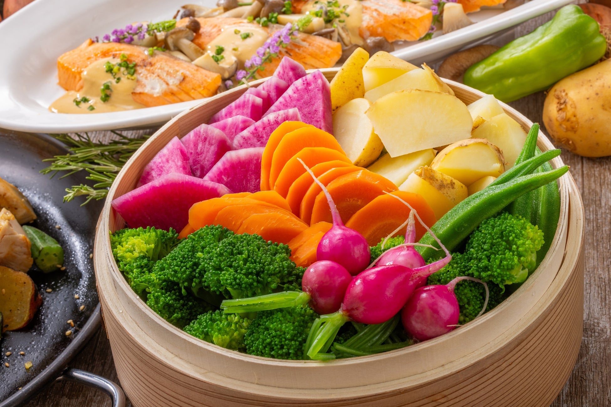 ・大一青果直送野菜のせいろ蒸し アジアンガーリックソース